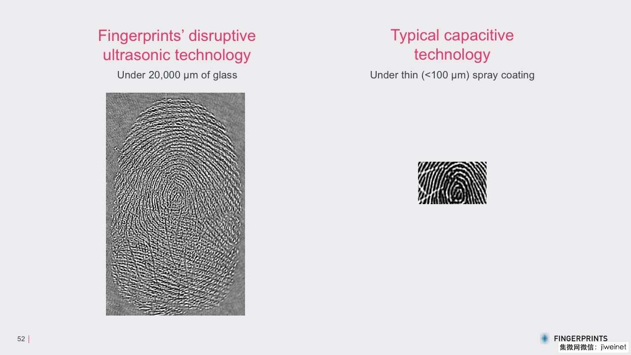 ? 该技术能够在不同的表面材质捕获指纹,如在厚玻璃和金属运行。当手指湿润或手指淹没在水下时,它也能够运作。这种技术在所有不同的玻璃厚度下工作得很好,即使是市场上最厚的玻璃;